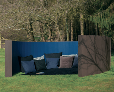 Un petit coin salon construit autour d’un claustra bois au milieu du jardin ça se repeint régulièrement histoire d’entretenir la qualité de nos siestes estivales. Alors un beau bleu pétrole pour peindre l’arrondi intérieur du claustra et une couleur teck pour l’extérieur il est difficile de faire mieux avec un simple coup de pinceau ! Peinture Laque Glycéro Astral.