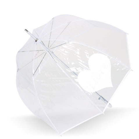 parapluie transparent qui change de couleur au contact de l'eau et fait apparaître un coeur libre