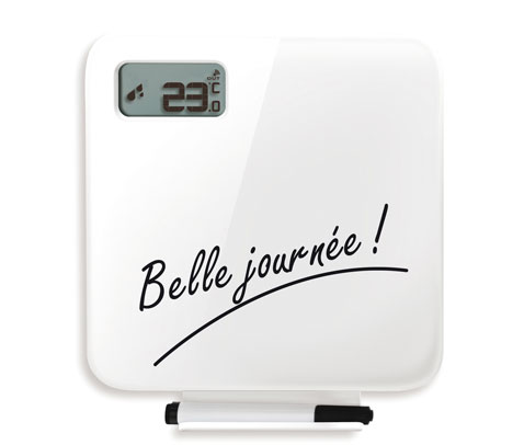 une station météo design équipée d'un tableau blanc effaçable
