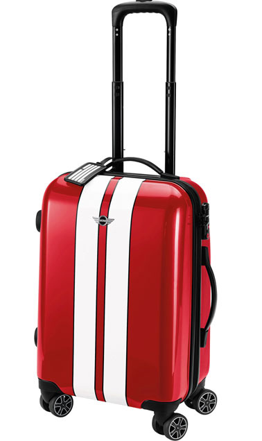 Pour s’envoler pour une escapade en amoureux, une valise adaptée pour les cabines d’avion ou pour se caler dans le coffre d’une mini voiture. Réalisée en matériaux ultra-légers et très mobile grâce à ses quatre roulettes au design jantes MINI et à sa poignée télescopique, elle dispose également de deux poignées fixes, de sangles de maintien, d’un filet de séparation, d’une housse de transport imprimée et d’un cadenas sécurisé TSA . Maintenant, il ne vous reste plus qu’à choisir votre destination pour fêter vos amours sous d’autres cieux. Dimensions : 55 cm x 36 cm x 23 cm. Prix : 169 € . Valise trolley cabine. Mini Lifestyle