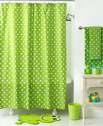 Des grenouilles vertes dans la salle de bain, rien de plus normal lorsque l’on est une petite fille ou petit garçon. Et quand Maman l’accessoirise d’un rideau de douche et de serviettes à pois verts et blancs l’heure du bain devient un réel plaisir. Pinterest.