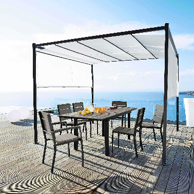 Une structure en bois composite et en aluminium, une harmonie parfaite avec la pureté de la nature alentour. ©Maison du Monde