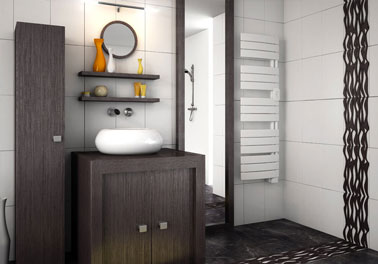 2. le sèche-serviette rayonnant : Montée en température plus lente, la chaleur produite est très confortable et les résistances ne génèrent aucun bruit. Equipé d’une minuterie intégrée programmable jusqu’à 24 h et d’un double thermostat qui permet de régler séparément une température « éco  » pour les heures nuit et les heures pendant lesquelles la salle de bain n’est pas utilisée, et une température de « confort ».
