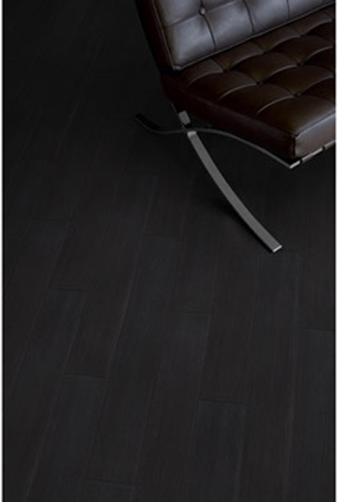 Déco salon design avec sol PVC lames adhésives aspect teck noir ébène Gerflor chez Leroy Merlin
