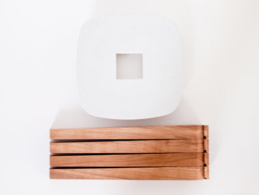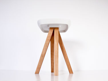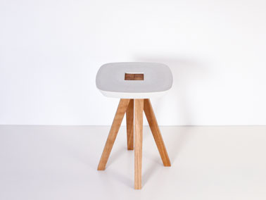 Le transport du tabouret a été pensé avant même sa conception. Il est livré à plat. Il suffit ensuite d’emboîter les quatre pieds dans l’assise pour que le tabouret prenne vie. Cette conception facilite également le recyclage du meuble en fin de vie, le bois et le béton dissociés prenant des chemins différents lors de leur traitement.
