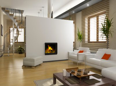 Le canapé est beige, une touche de beige dans notre poêle a granulé