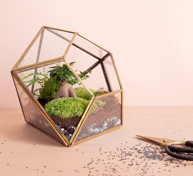 Le terrarium laisse place à la créativité. Pour en faire un mini jardin original, utiliser des récipients aux formes géométriques.