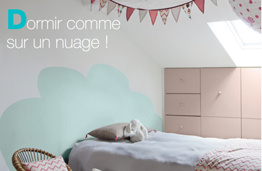 Pour faire une tête de lit poétique sur le mur de votre chambre ou dans celle d’une chambre d’enfant, choisissez une couleur de peinture dans les teintes pastel pour partir dans les bras de Morphée est plus rapidement !