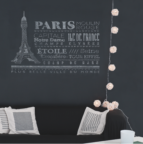 - 16 coloris pour la peinture Tableau d’Idéstyl ( Amande, blanc pur, bleu ciel, choco, coquille d’oeuf, coquelicot, galet, gris métal, gris nuage, gris orage, jaune jaune, mousse, noir carbone, piment, terre, rose dragée.) Applicable sur toute surface lisse et permet d’écrire avec des feutres effaçables. Tableau Blanc » d’Idéstyl. 140 euros le kit pour couvrir 5m2