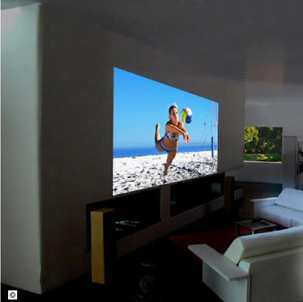 La peinture home cinéma est le produit idéal pour qui ne veut pas casser la décoration de son salon avec un écran de télévision qui, même si il est extra plat ne sera jamais très décoratif ! Cette peinture spéciale permet de visionner les projections d’un home cinéma.