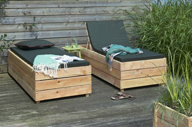 Transats faits avec des planches de bois. Rien de mieux, que de profiter du beau temps, se reposer tranquillement sur un transat dans le jardin ou sur la terrasse.