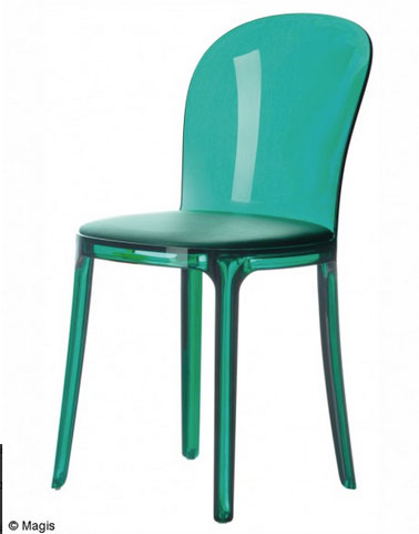 Chaise transparente vert émeraude pour la cuisine ou la salle à manger. Disponible chez madeindesign