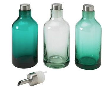 A placer sur les étagères de la cuisine un lot de 3 bouteilles couleur assorties vert émeraude. dimensions :  hauteur 15 cmIkéa suit la tendance avec ce lot de 3 bouteilles en verre avec leur bouchon métal qui pourront mises en place sur les étagères ouvertes de la cuisine. En multipliant les lots de bouteille, vous aurez un effet de masse très déco. Dimensions : Diamètre 7 cm, hauteur : 15 cm. Prix de la bouteille : 7,99 €