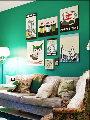 Peinture murale pour salon, cuisine et salle de bains couleur vert émeraude, la couleur tendance pour la maison en 2013
