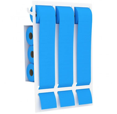 Avec ce distributeur de papier toilette inutile de recourir au placard ou à l’étagère dans les wc pour ranger les rouleaux d’avance. A porter de main, trois distributeurs plus une réserve astucieuse située à l’arrière pour ranger jusqu’à neuf rouleaux de papier. En le garnissant de rouleaux de papier couleur vous avez un objet déco pour vos toilettes. Dimensions : l 400 mm x h 600 mm x ép 110 mm. Matière : métal. Disponible en gris et blanc. Prix : 149 € chez PointWC.