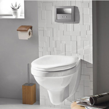 La cuvette WC suspendu c’est en fait un package comprenant une cuvette, une assise, sa lunette et une structure bloc que l’on encastre dans le mur qui intègre le mécanisme de la chasse d’eau, la tuyauterie ainsi que la robinetterie. Après l’installation de ce support bâti, il est dissimulé à l’aide d’une coffrage. Pour l’opération intégration de ce coffrage à la décoration des WC, il peut se penser habillé de carrelage, de peinture, de bois ou de papier peint. Pour l’accès aux tuyauteries et évacuation, tout comme pour une baignoire, une trappe regard est installée dans le mur.